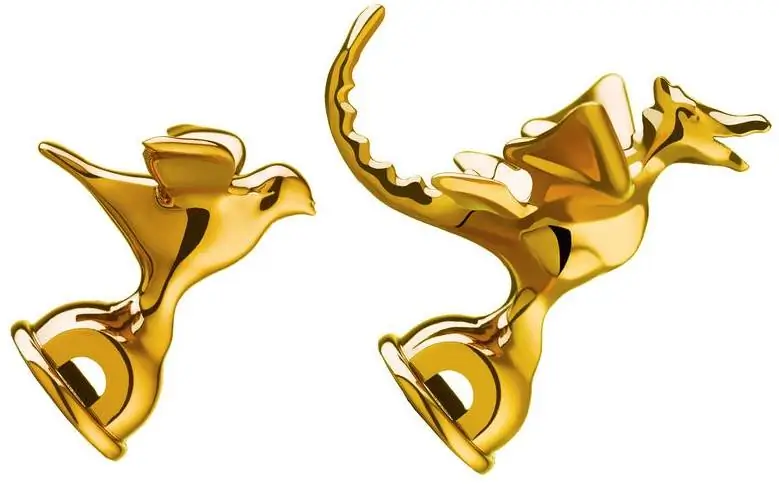 Set bestehend aus zwei zwei Flöten aus PA, Messing metallisiert. Limitierte Auflage von 9.999 Sets. Goldfarbig. Zum 30. Jubiläum des berühmten Wasserkessels 9093 von Michael Graves mit der Vogelflöte. Den Deckel um den Knauf herum ziert der eingestanzte Schriftzug Tea Rex 9093 30th anniversary.