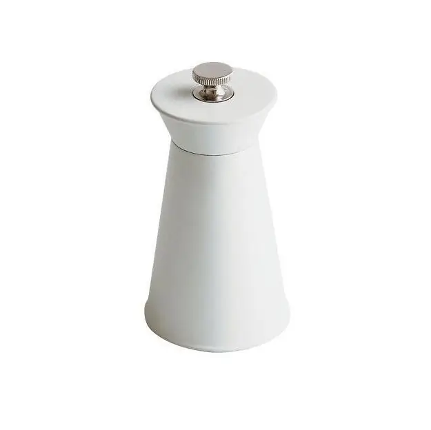 Salzmühle aus PA mit Knopf zur Regulierung des Mahlgrades aus Edelstahl 18/10. weiß. ArtNr. Edelstahl-Mahlwerk. AJM10 W Designer Morrison Jasper Durchmesser: 7 cm. h. 12 cm. OHNE Karton.