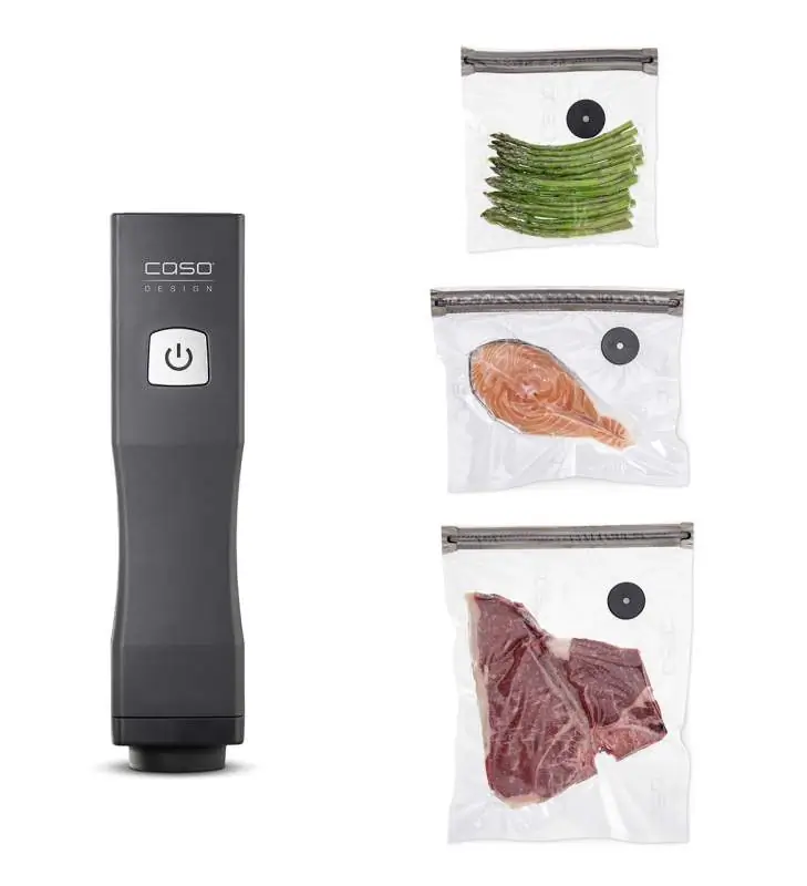 Problemlos mit der Hand ohne Kabel vakuumieren, die Pumpe schafft drei Liter pro Minute bei -0,4 bar Druck. ED-Anzeige des Ladezustandes mit roter Akkuwarnung. Gerät stoppt automatisch nach Erreichen des Vakuums oder zur Sicherheit nach zwei Minuten.