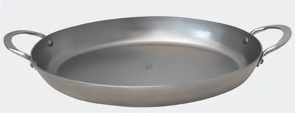 ovale Pfanne aus Eisen mit Bienenwachsbeschichtung.
