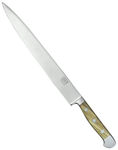 Als authorisierter Güde-Fachhändler bieten wir ihnen Küchenmesser aus einigen Güde-Serien an. äußerst robust sind die Kappa-Messer mit Griffen komplett aus Edelstahl, ein solches Messer darf auch einmal in die Spülmaschine. Wunderschön sind allerdings die Messer mit Eichenholz- (Alpha-Eiche) oder Olivenholzgriffen (Alpha-Olive), die Haptik ist sehr angenehm.