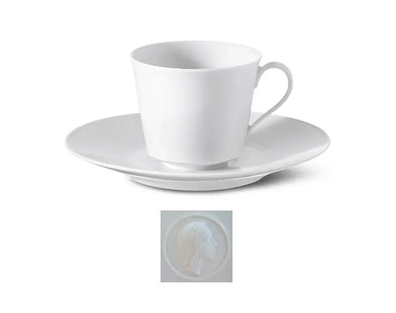 komplette Mokkatasse, bestehend aus Ober- und Untertasse.
