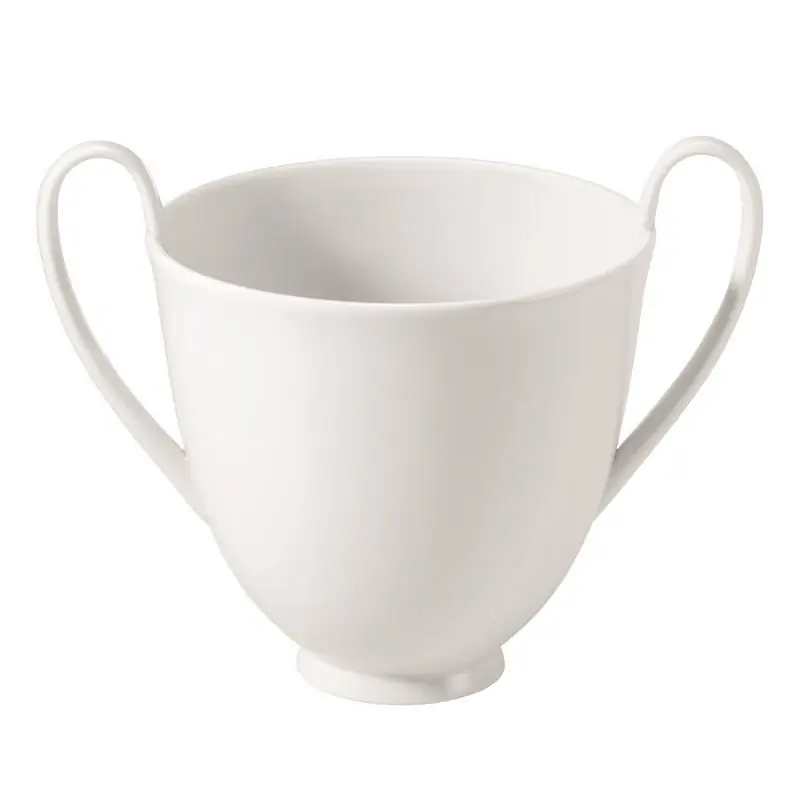 Die Serie Kurland hat Ihren Ursprung um 1790. Entworfen für den Herzog von Kurland war dies eine der allerersten klassizistischen Porzellanformen (aus dieser Zeit stammt auch das Service Perl der Nymphenburger Manufaktur). Typische Stilmerkmale sind die kantige Form und das griechische Tuchgehänge im Relief auf allen Teilen. Neben floralen Dekoren gibt es auch rein geometrische wie bspw. die feine Tuchgehängemalerei in echtem Poliergold, das war damals ein absolutes Novum.