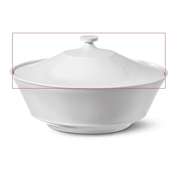 KPM-Berlin Urania weiss. Hervorgegangen aus der Form Arkadia von Trude Petri (1938). Hartporzellan, spülmaschinenfest. Deckel werden eingepasst, nicht jeder Deckel passt auf jedes Unterteil. Grund ist der unterschiedlich starke Schwund im Brand.