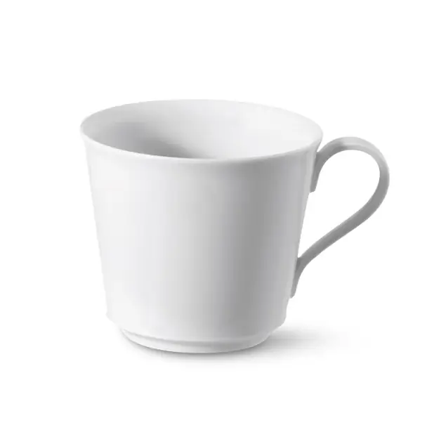 KPM-Berlin Urania weiss. Hervorgegangen aus der Form Arkadia von Trude Petri (1938). Hartporzellan, spülmaschinenfest. Frühstückstasse bzw. Henkelbecher.