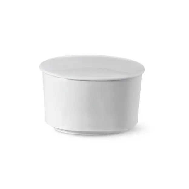 KPM-Berlin Urania weiss. Hervorgegangen aus der Form Arkadia von Trude Petri (1938). Hartporzellan, spülmaschinenfest. Zuckerdose oval.