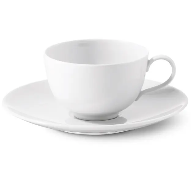 KPM-Berlin Urbino weiss. Bauhausstil. Design Trude Petri, 1930. Hartporzellan, spülmaschinenfest. Kaffeetasse halbhoch. Nr. 3. Obertasse Ø 9 cm, 5 cm hoch, Inhalt 0,13 ltr. Untertasse Ø 15 cm.