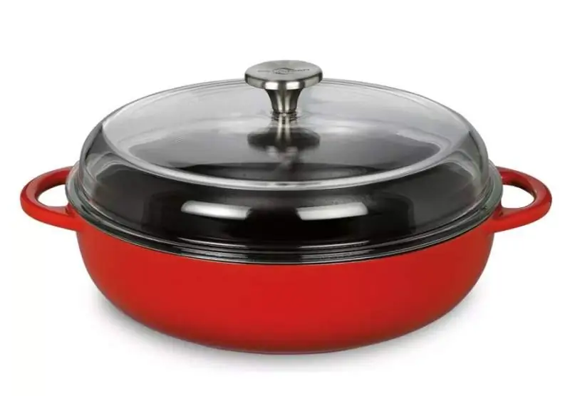 Bauernpfanne Gusseisen mit hohem Glasdeckel 28 cm rot |