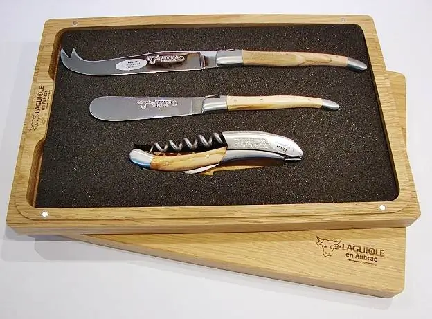 3 hochwertige Laguiole Messer für Käse und Wein in einer schönen Holzbox.