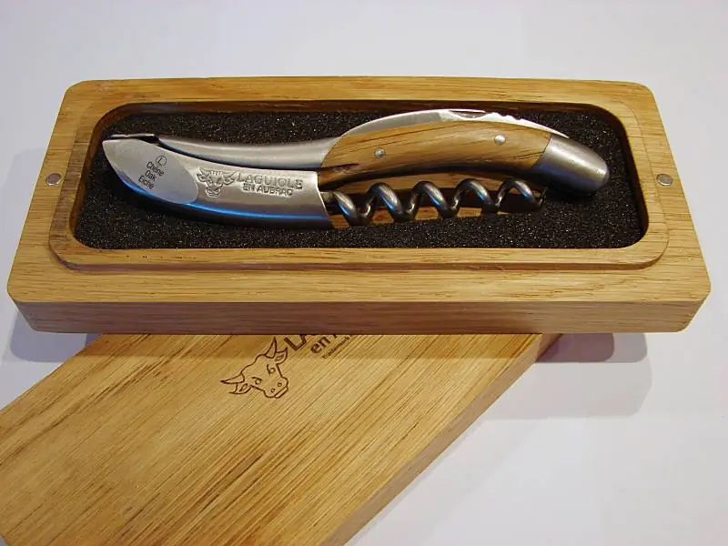 Sommelier- bzw Kellnermesser mit Griff aus Fasseichenholz und Klinge aus hochwertigem Schneidstahl mit aufwendiger und höchst langlebiger Klappmechanik.