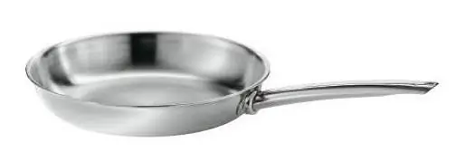 Natürlich kann auch alles andere gut gebraten werden wie Spiegeleier oder Gemüse. Dabei leicher zu reinigen als eine Eisenpfanne. Bratpfanne aus Edelstahl. Für alle Herdarten, auch für Induktion.