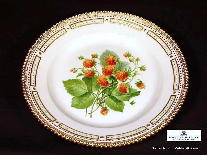Flora Danica Teller 19.5cm Nr.6 Walderdbeeren |