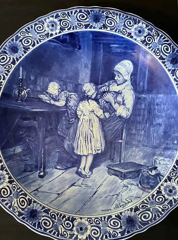 Sehr berühmt ist die Manufaktur für das Delfter Blau. Der blass-hellblaue Grundton der Glasur ist einzigartig und unerreicht. Die Malereien entsprechen chinesischen Mustern und werden natürlich immer noch freihand gemalt.