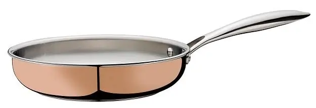Bratpfanne aus fünfschichtigem Aufbau: auf der Innenseite Edelstahl, um die Gebrauchsfähigkeit zu gewährleisten. Im Kern drei Schichten Aluminium für hervorragende Hitzeverteilung, Außenseite aus Kupfer. Neben dem schönen Aussehen ist Kupfer natürlich auch ein excellenter Hitzeverteiler.