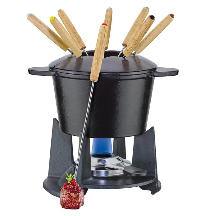 massives gusseisernes Fondue für 6 Personen, komplett.