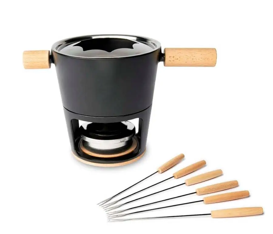 mit Pasten-Sicherheitsbrenner und 6 Fonduegabeln, induktionsgeeignet.
