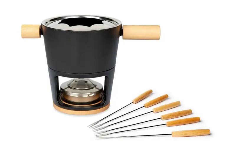 mit Pasten-Sicherheitsbrenner und 6 Fonduegabeln, induktionsgeeignet.