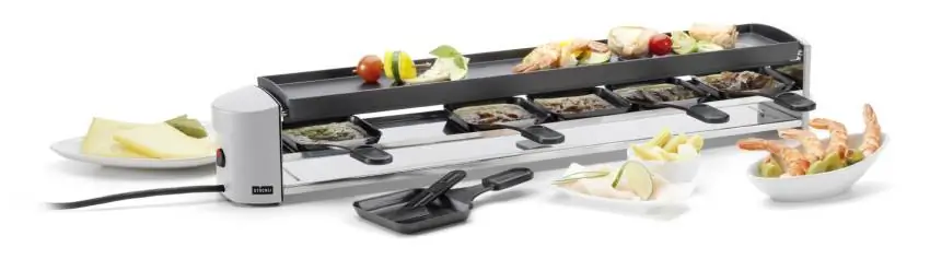 langes und schmales Raclette mit sehr effektiver Oberhitze für 6 Personen.