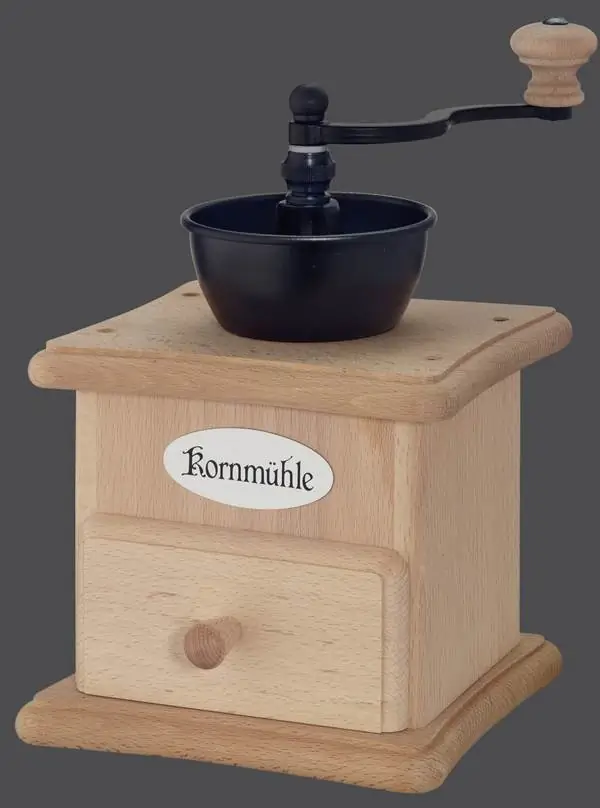 Die Kaffeemühlen haben ebenso eine über Jahrzehnte entwickelte hohe Qualität. Die Beschickung ist einfach durch einen Schieber unter der Kurbel. Der Mahlgrad wird über eine Mutter unter der Kurbel eingestellt.