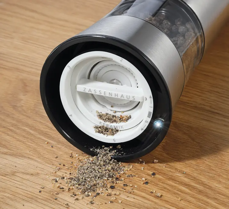 elektrische Pfeffermühle mit original Zassenhaus-Qualitäts-Mahlwerk aus Hochleistungskeramik.