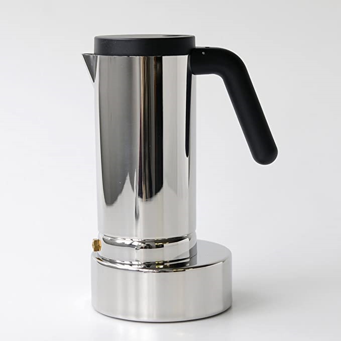 modern gestalteter Espressokocher aus Edelstahl designed von Wiels Aret.