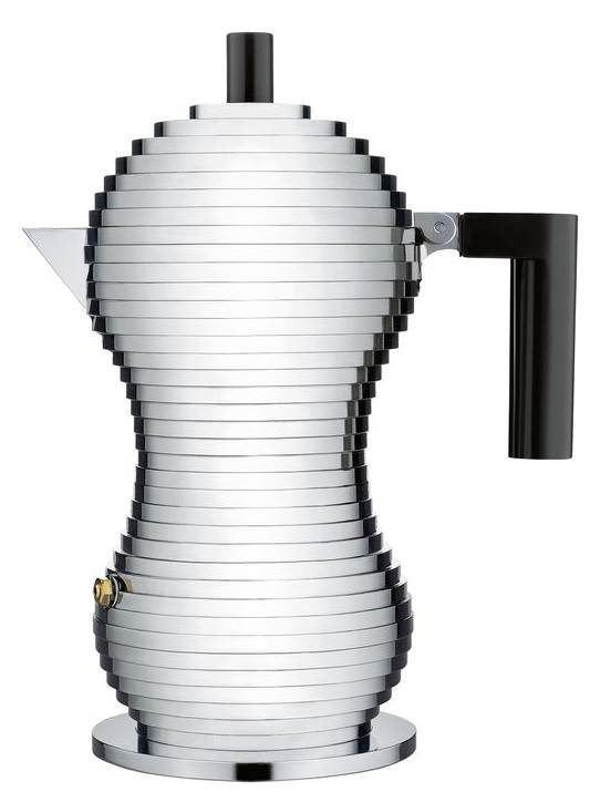 Espressokanne Pulcina von dem Architekten Michele De Lucchi. Es sollten die organoleptischen Eigenschaften von Espresso verbessert werden.