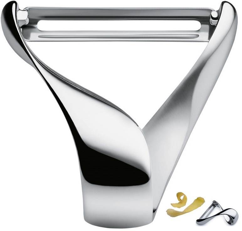 Kartoffelschäler aus glänzend poliertem Edelstahl von Valerio Sommella, gehört zur Kollektion der Objets-Bijoux .