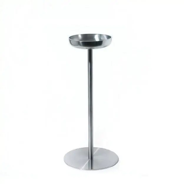 Weinkühlerständer aus Edelstahl 18/10 mattiert. ArtNr. JM26 Designer Morrison Jasper Durchmesser: 28 cm Maße: h. 63 cm.