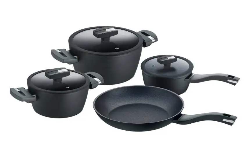Stiele und Griffe ergonomisch geformt mit Soft-Touch-Effekt, backofenfest bis 140° C.