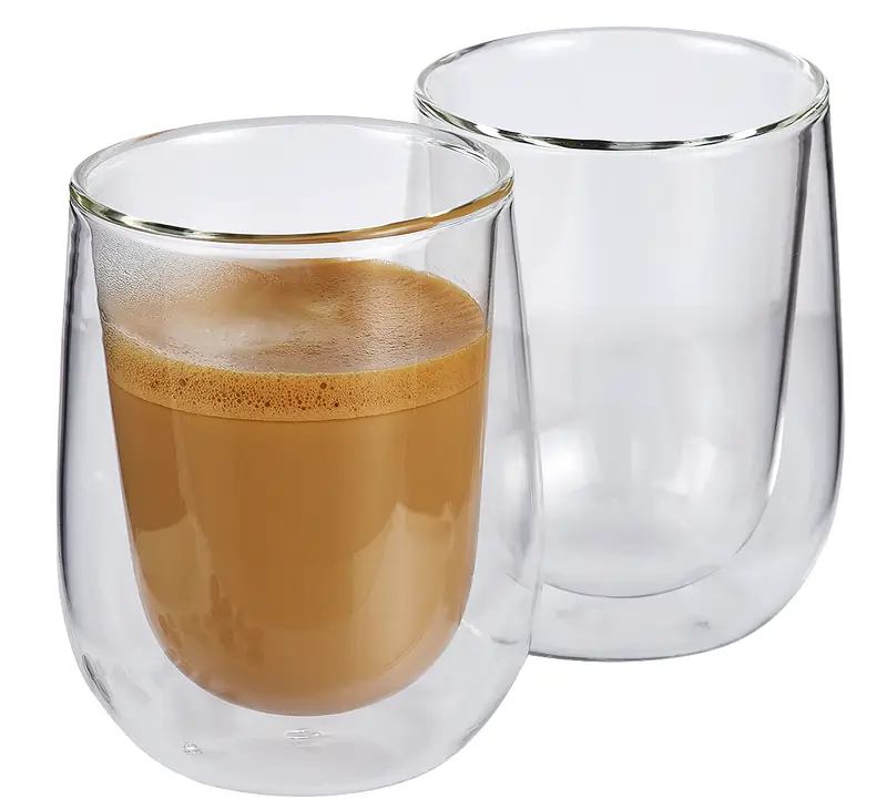 doppelwandiges hitzebeständiges Borosilikatglas.