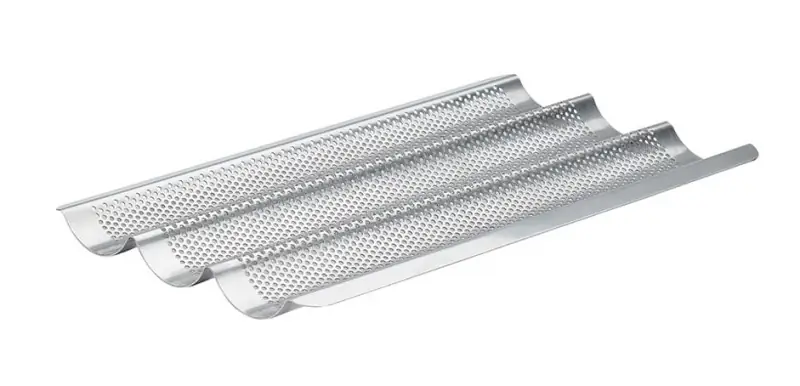 perforiertes Backblech aus Stahl für drei Baguettes.