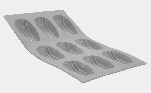 Verträgt Temperaturen von -70°C bis +300°C. Mit dieser Form lassen sich neun Madeleines bzw. Bärentatzen backen und anschließend leicht auslösen.