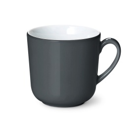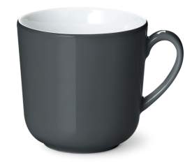 Klassischer grosser Henkelbecher in der schlichten Bauhausform. Maße: Ø 9,7 cm, 10 cm hoch. 12,5 cm breit. |