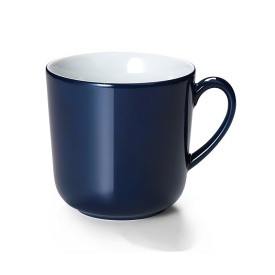 Klassischer grosser Henkelbecher in der schlichten Bauhausform. Maße: Ø 9,7 cm, 10 cm hoch. 12,5 cm breit. |