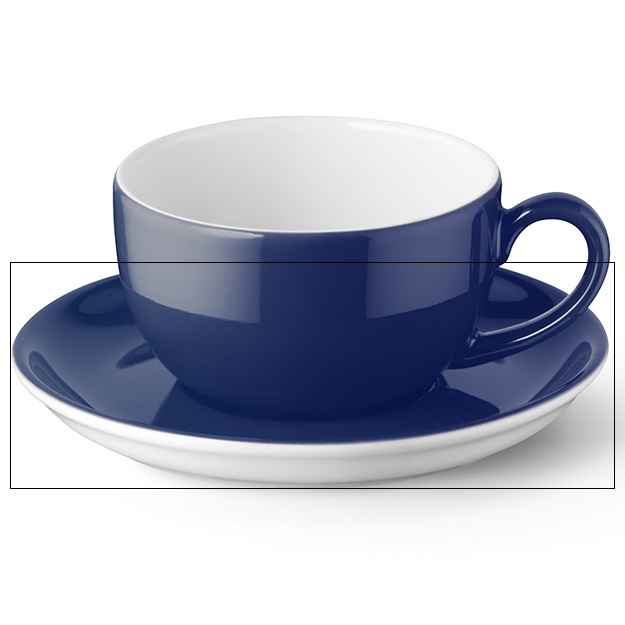 Lieferung ohne Untertasse. Maße: Ø 10,5 cm, 6 cm hoch, 13,5 cm breit mit Griff. |
