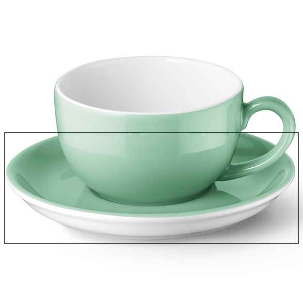 Lieferung ohne Untertasse. Maße: Ø 10,5 cm, 6 cm hoch, 13,5 cm breit mit Griff. |