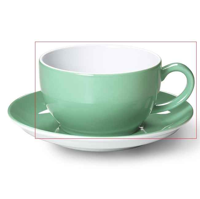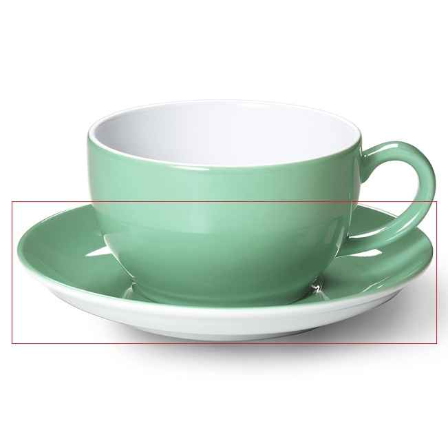 Lieferung ohne Untertasse. Maße: Ø 9,5 cm, 5,5 cm hoch, 12 cm breit mit Griff. |