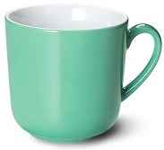 Klassischer grosser Henkelbecher in der schlichten Bauhausform. Maße: Ø 9,7 cm, 10 cm hoch. 12,5 cm breit. |