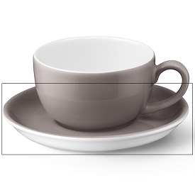 Lieferung ohne Untertasse. Maße: Ø 9,5 cm, 5,5 cm hoch, 12 cm breit mit Griff. |