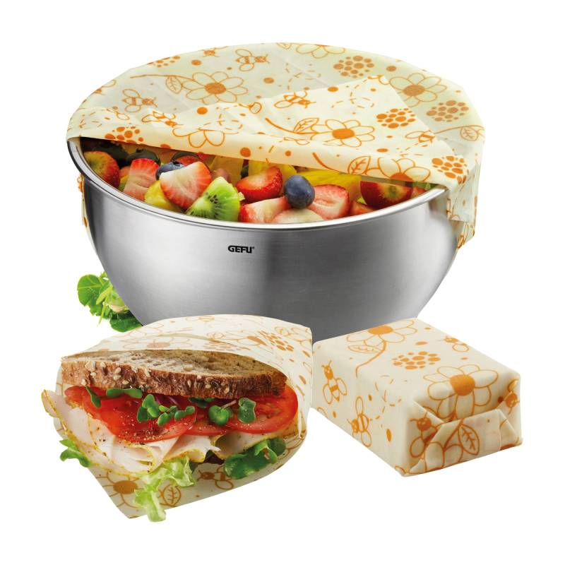 100% bienengewachste Baumwolle, leicht zu reinigen. Zum Abdecken, Frischhalten, Verpacken oder Einfrieren. Kann bis zu zwei Jahre lang benutzt werden.