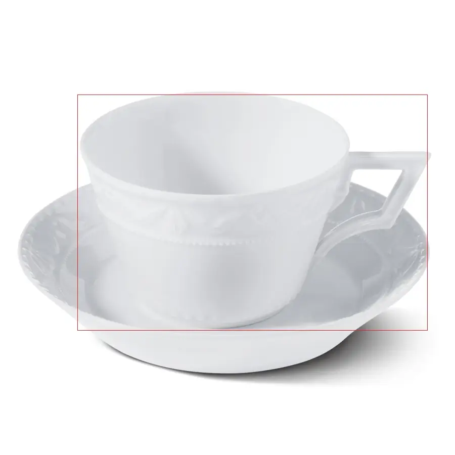 KPM-Berlin Kurland weiss. Hartporzellan, hergestellt mit sehr viel Handarbeit, Ursprung etwa 1790. Büro-Obertasse. Ø 12 cm, 7,7 cm hoch.