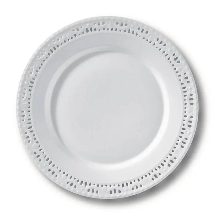 KPM-Berlin Kurland weiss. Hartporzellan, hergestellt mit sehr viel Handarbeit, Ursprung etwa 1790. Speiseteller durchbrochen. Ø 26 cm.