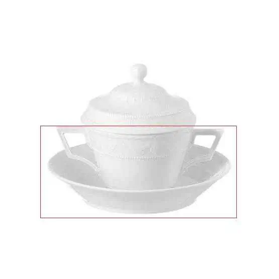 komplette Suppentasse, bestehend aus Suppen-Ober- und Suppen-Untertasse, ohne Deckel.