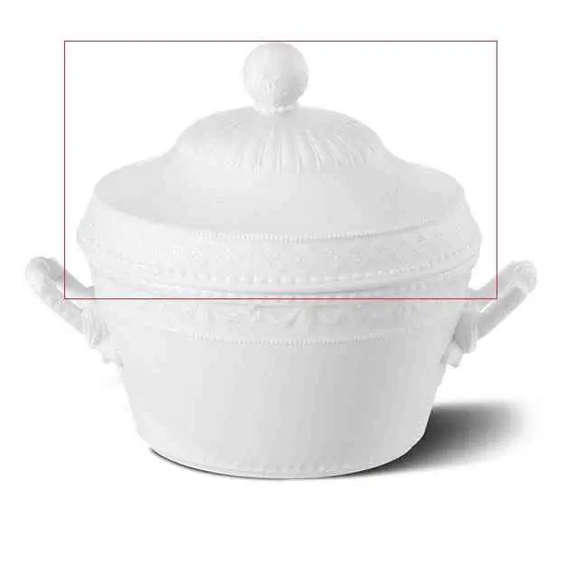 KPM-Berlin Kurland weiss. Hartporzellan, hergestellt mit sehr viel Handarbeit, Ursprung etwa 1790. Terrine - Deckel. Ø 23,5 cm. Deckel werden eingepasst, nicht jeder Deckel passt auf jedes Unterteil. Grund ist der unterschiedlich starke Schwund im Brand.