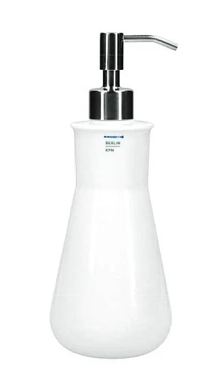 Spender aus Porzellan mit Pumpe aus Edelstahl.