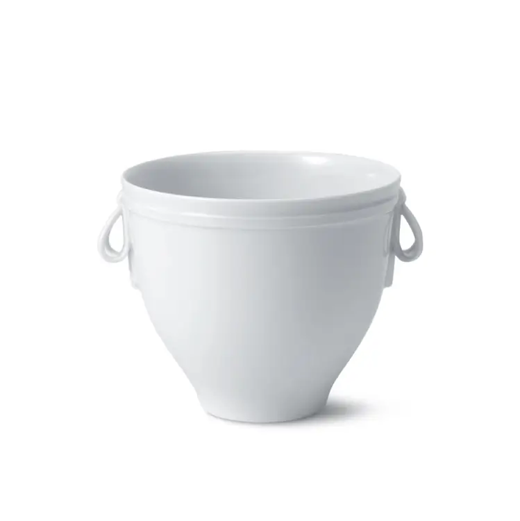 Die Serie Kurland hat Ihren Ursprung um 1790. Entworfen für den Herzog von Kurland war dies eine der allerersten klassizistischen Porzellanformen (aus dieser Zeit stammt auch das Service Perl der Nymphenburger Manufaktur). Typische Stilmerkmale sind die kantige Form und das griechische Tuchgehänge im Relief auf allen Teilen. Neben floralen Dekoren gibt es auch rein geometrische wie bspw. die feine Tuchgehängemalerei in echtem Poliergold, das war damals ein absolutes Novum.