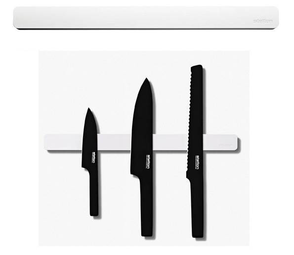 stelton präsentiert jetzt die erste weiße Messerleiste in schlichtem Design, die es auf dem Markt gibt. Damit können Sie Ihre Küchenwerkzeuge auf elegante Weise aufbewahren und hüten. An einer weißen Wand wirkt der 42 cm lange Pure White leicht und schwebend. Gleichzeitig bringt die glatte Oberfläche die Skulpturform der mattschwarzen Messer der Messerserie Pure Black erst richtig zur Geltung. Diese einzigartige Messerwandhalterung ist leicht aufzuhängen und fügt sich mit ihrem diskreten Look in jede Küche ein.