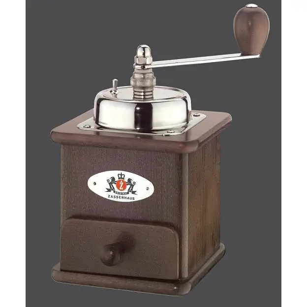 Schoß-Kaffeemühle mit original Zassenhaus-Qualitäts-Mahlwerk aus geschmiedetem Stahl, mit praktischer, stufenloser Grob-/Feineinstellung, auch ganz fein für Espresso einstellbar.